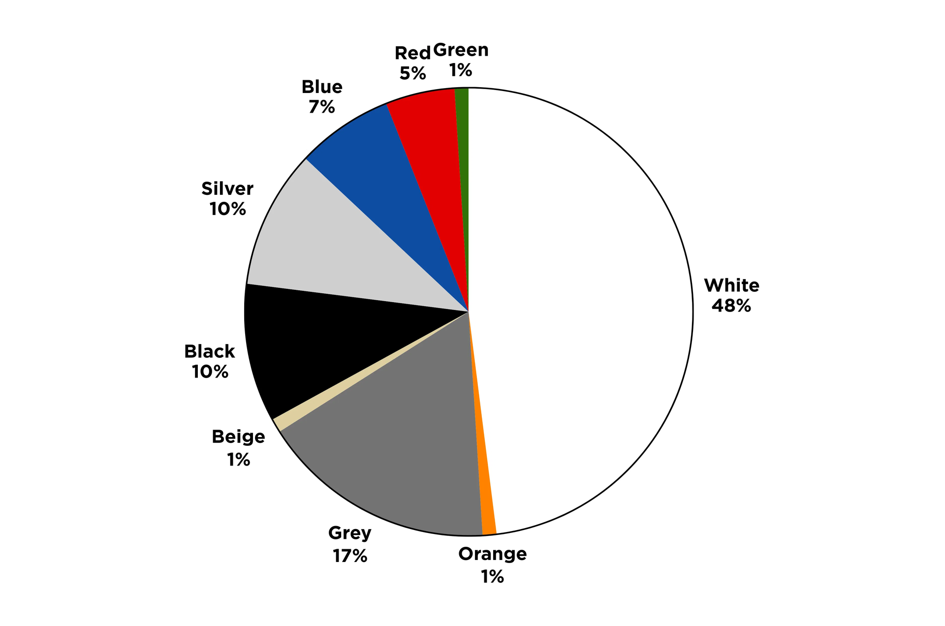Colors ki baat karein so India mein blue most popular hai, around 7% share ke saath. Uske baad red aata hai, jo around 5% hai. Reports ye bhi kehti hai ki green color mein bhi India mein interest grow ho raha hai, especially SUVs par, but overall share abhi kaafi small hai, sirf 1%. Beige or orange ki bhi same situation hai, dono ka share 1% each hai.