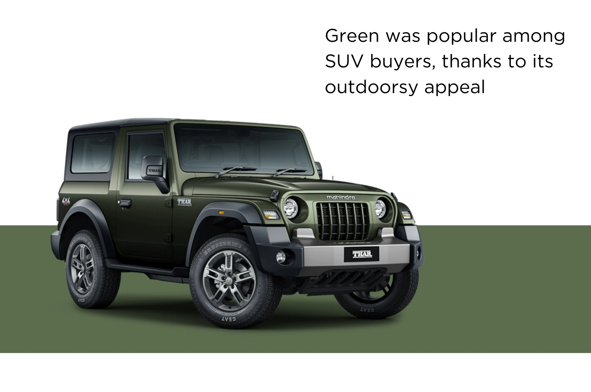 Data ye show karta hai ki market mein abhi bhi safe or neutral colours ka hi zyada trend hai, but gradually different segment or body styles mein buyers personalisation ki taraf bhi move kar rahe hai.